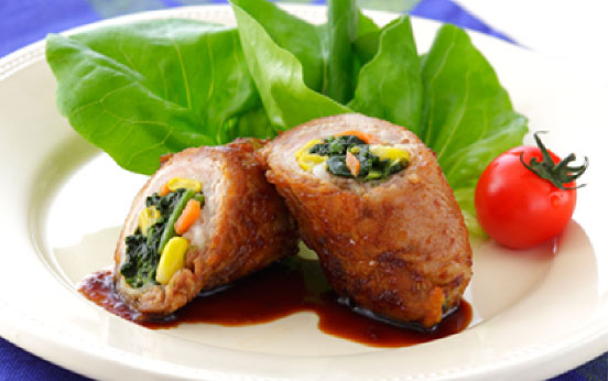 Frozen food Arrangerecipe Meat wrapped butter fried spinach