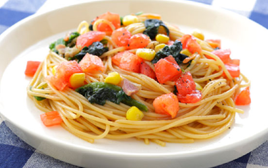 Frozen food Arrangerecipe Stir-fried butter with spinach Tomato refreshing salad pasta