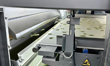 カラーソーター、⽬視により夾雑物(きょうざつぶつ)、⾍混⼊の痕跡があるえだまめを除去します。