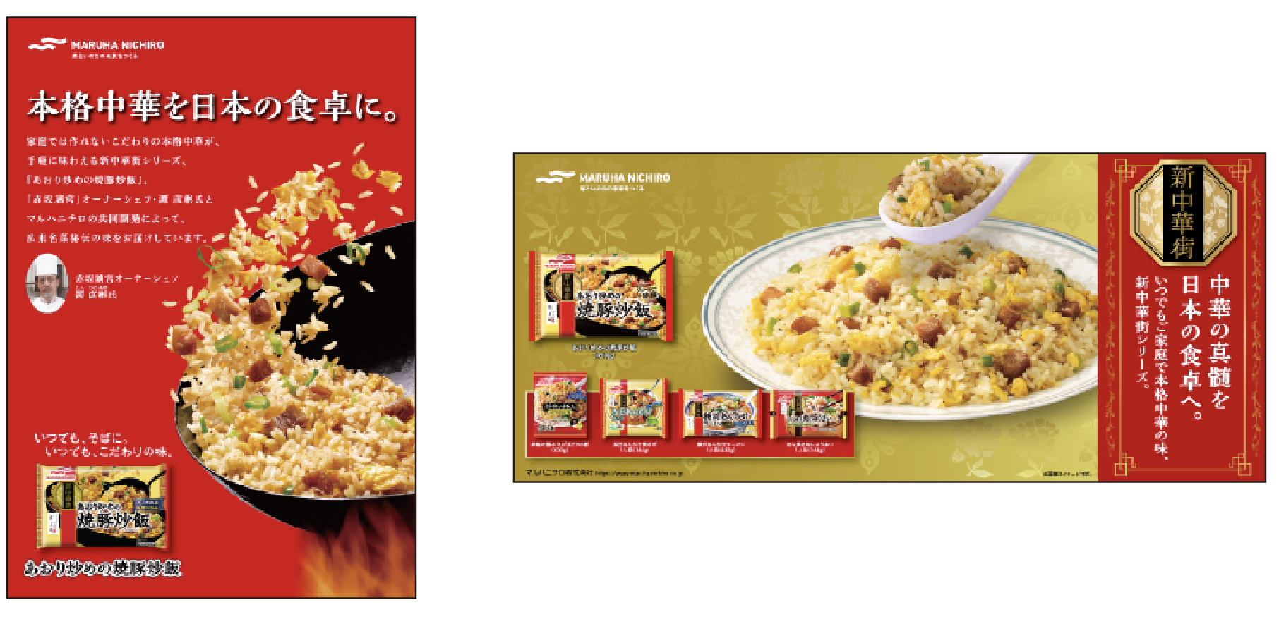 譚彦彬氏とマルハニチロとの取り組みは、1995年発売「あら挽き⾁しゅうまい」に始まり「横浜あんかけラーメン」「あおり炒めの焼豚炒飯」「五⽬あんかけ焼そば」などヒット商品を⽣み出しています。