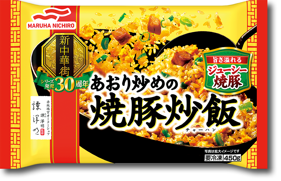 赤坂璃宮 譚オーナーシェフのご指導のもと、「あおる回数、時間、鍋肌の温度、具材投入タイミング」まですべてをデータ化し、調理手順を完全に再現した世界に一台だけの炒飯製造機を完成。「あおり炒めの焼豚炒飯」は高温短時間で炒めることで、パラっとした食感を実現。そのままの味わいを冷凍にした、いつでも家庭で楽しめる本格派の炒飯が完成したのです。